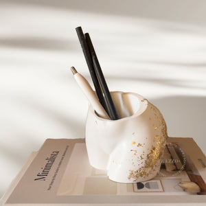 Its versatility makes it perfect as a planter, pen holder, vase for dried or preserved flowers, or even for succulents. Whether used for makeup brushes or simply displayed on a shelf or coffee table, this unique vase is both stylish and functional.