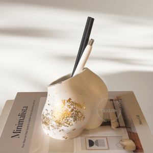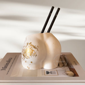 Add a refined yet whimsical touch to your space with the Trazzo Female Butt Vase. Crafted from eco-friendly resin and adorned with exquisite gold leaf details, this piece will instantly elevate any room.