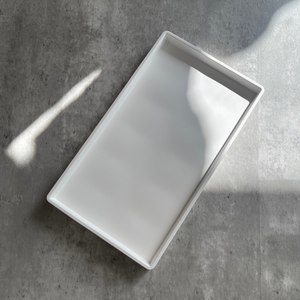 Elegantly elevate your space with our Not So Basic rectangular minimalist white tray. Crafted with eco-resin, this luxurious styling tray is a chic accessory for the most discerning interiors. Sleek and modern, this neutral tray is ideal for a minimalist aesthetic, adding both style and utility to any living area.